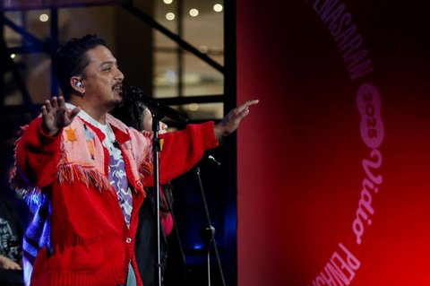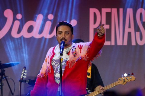 Penyanyi Sal Priadi tampil dalam acara Vidio Penasaran 2025 di The Dome Senayan Park, Jakarta, Kamis (6/2/2025). (Liputan6.com/Herman Zakharia)