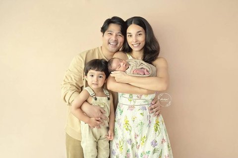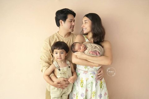 Untuk sesi pemotretan newborn sekaligus keluarga, mereka juga berpose berempat bersama si sulung, Aizen De Araujo Iskandar.