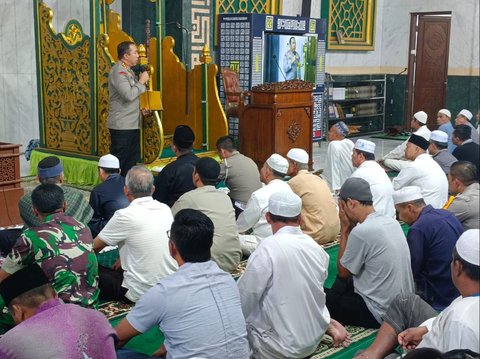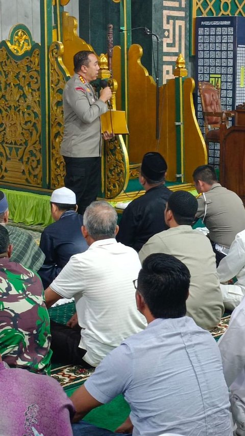 Kombes Jeki mengajak jemaah Masjid Raya untuk meramaikan pemungutan suara pada tanggal 14 Februari 2024 dan memilih pemimpin Indonesia dengan damai.