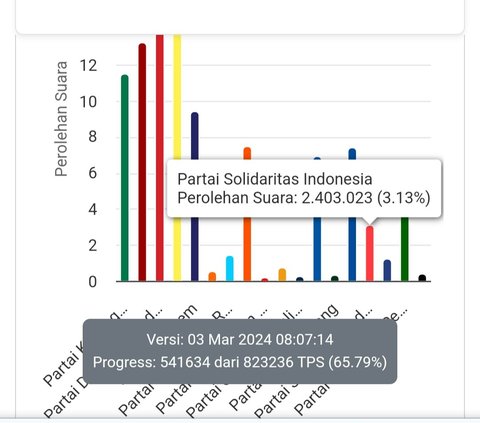 Partai Solidaritas Indonesia (PSI) mengalami lonjakan suara mencapai 3,13 persen berdasarkan data hasil hasil real count KPU pada Pemilihan Umum Legislatif (Pileg) 2024 turut menyita perhatian.