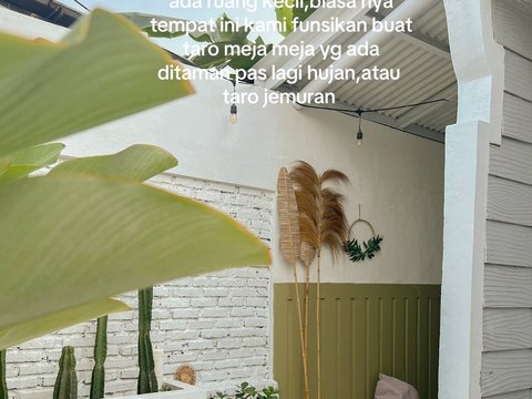 Rika juga membangun halaman belakang dengan super estetik. Dengan menanam berbagai tanaman di pinggir tembok serta meja kecil dan lampu kecil membuat ruangan tersebut sebagai spot favoritnya, terlebih saat sore hari.