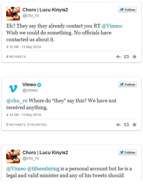 "Wish we could do something. No official have contacted us about itu. We have not recieved anything," tulis Vimeo dalam Twitter.