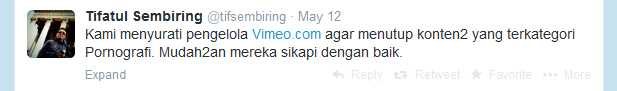 Akan tetapi, ketika kasus pemblokiran 'sepihak' ini mulai menjalar ke mana-mana, ada beberapa tweeps -panggilan khusus pengguna Twitter- dari Indonesia yang langsung menanyakan perihal pemblokiran itu kepada Vimeo.